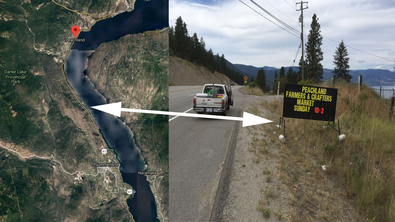 | Big Black Sign has some ideal locations for community event signage. See the sample location (below) between Peachland and Summerland . This location could provide info for any community event between Kelowna and Penticton. Note: This service is provided at a discounted rate for service groups. (Call Jim to Discuss) | |||||
